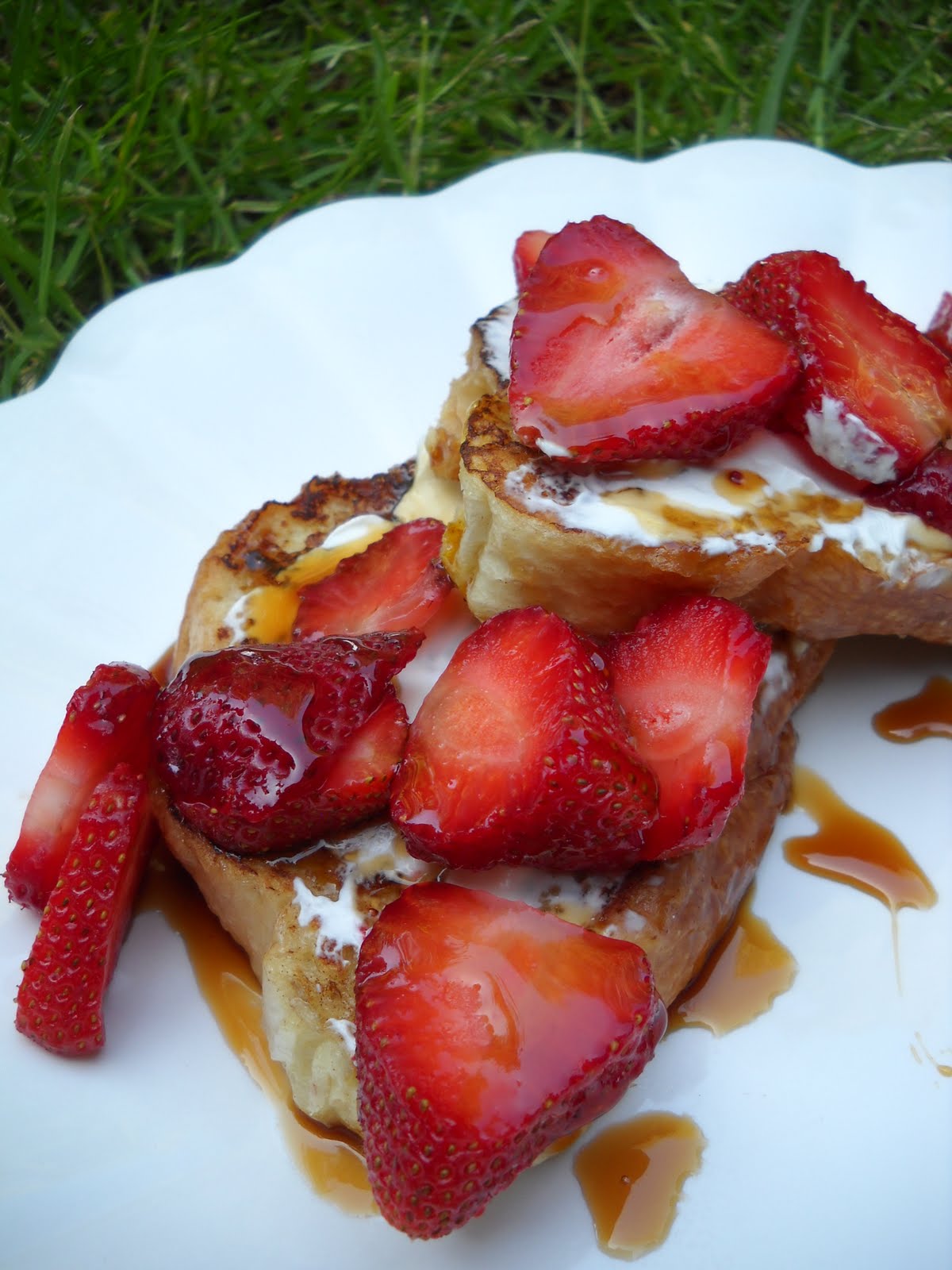 - Spread French toast generously with sour cream, top with strawberries, drizzle with syrup and eat heartily.