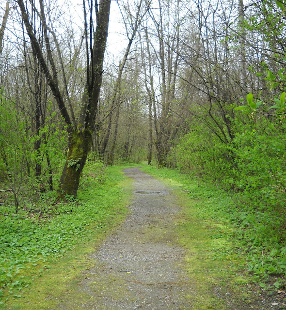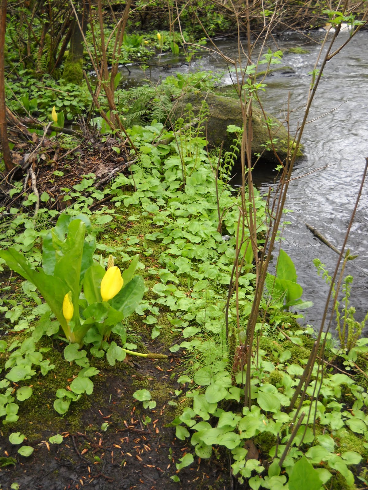 Although it was raining, I had to take a little stroll to the creek, to see how spring was advancing. It did me good to breathe in the rain-washed air and see the blackberry bushes leafing out and new grass poking up through winter’s brown leftovers.