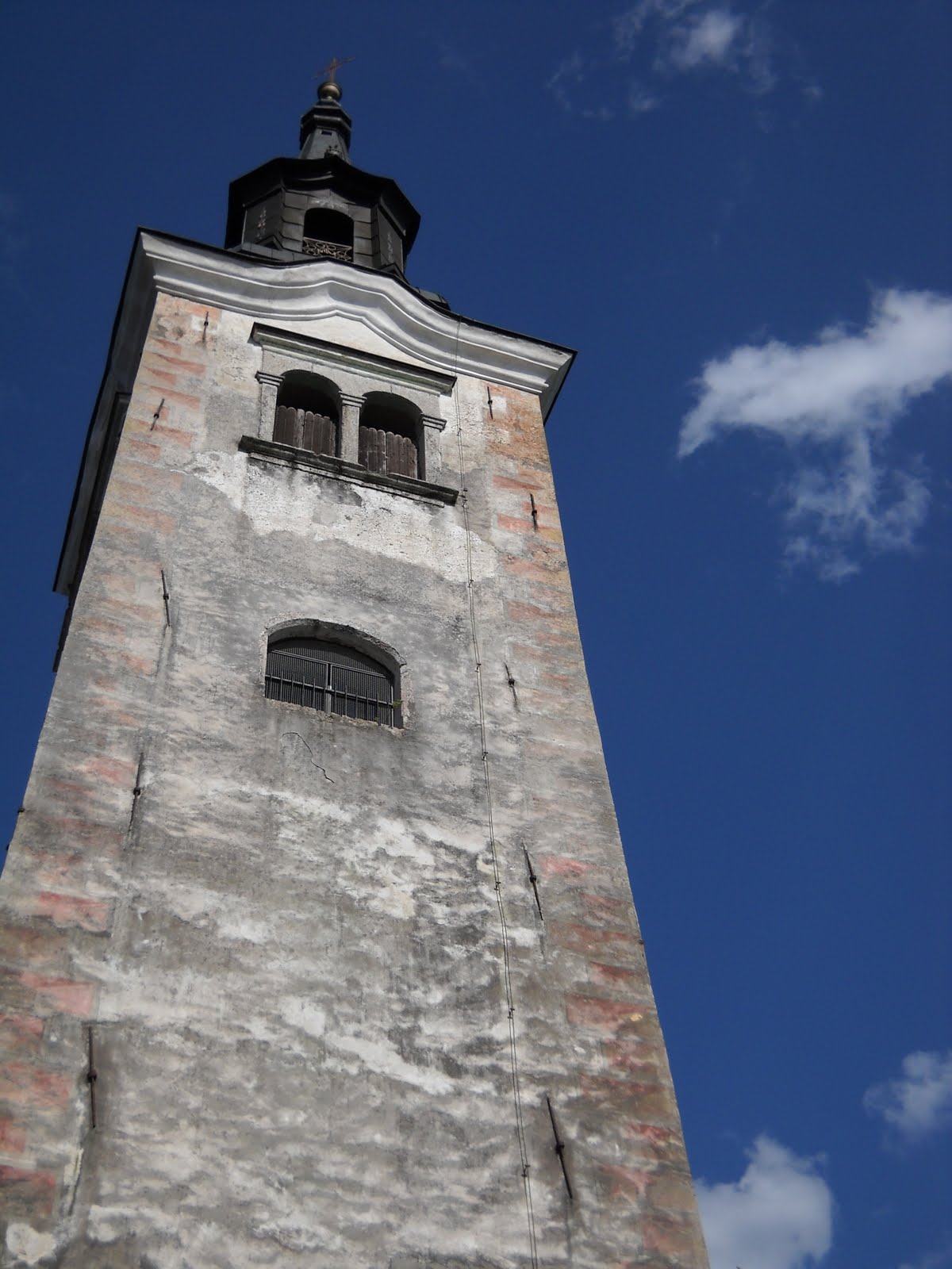 After oohing and aahing appreciatively, we trekked up, up, up a steep flight of stone steps to the church, Pilgrimage Church of the Assumption of Mary, craning our necks to see the tower far above us.