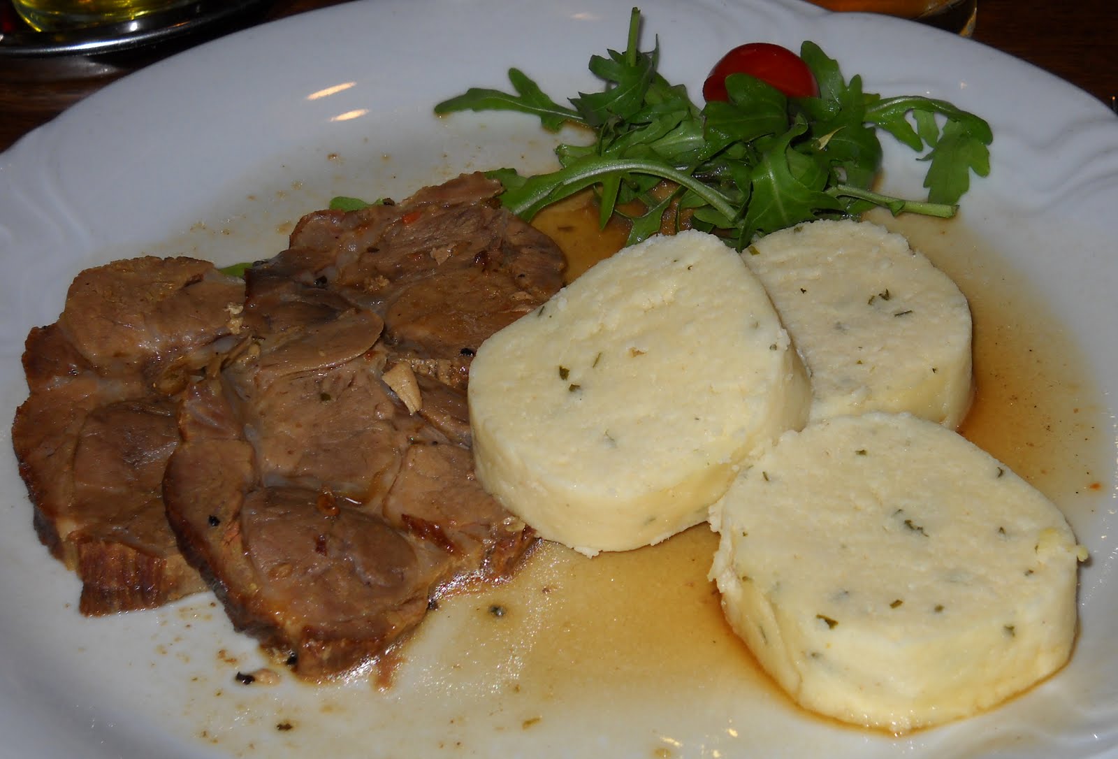 At last dinner arrived! Stace, Nat and I ordered tender roast pork with arugula salad and herbed dumplings.
