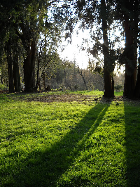 This gorgeous view from the bench!! How I love to lay here and look up at the trees, watching the setting sun turn everything all glowy and wonderful. 🙂