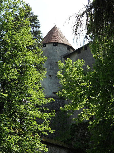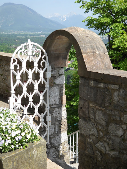 We pulled over to the prettiest meadow and just gazed up at them. Tearing ourselves away, we continued on, finding exquisite beauty at every turn. I was struck most by the color of the river we followed, a pale, ice blue, so striking against the lush green terrain. Before we knew it, we were at our destination: Bled Castle.